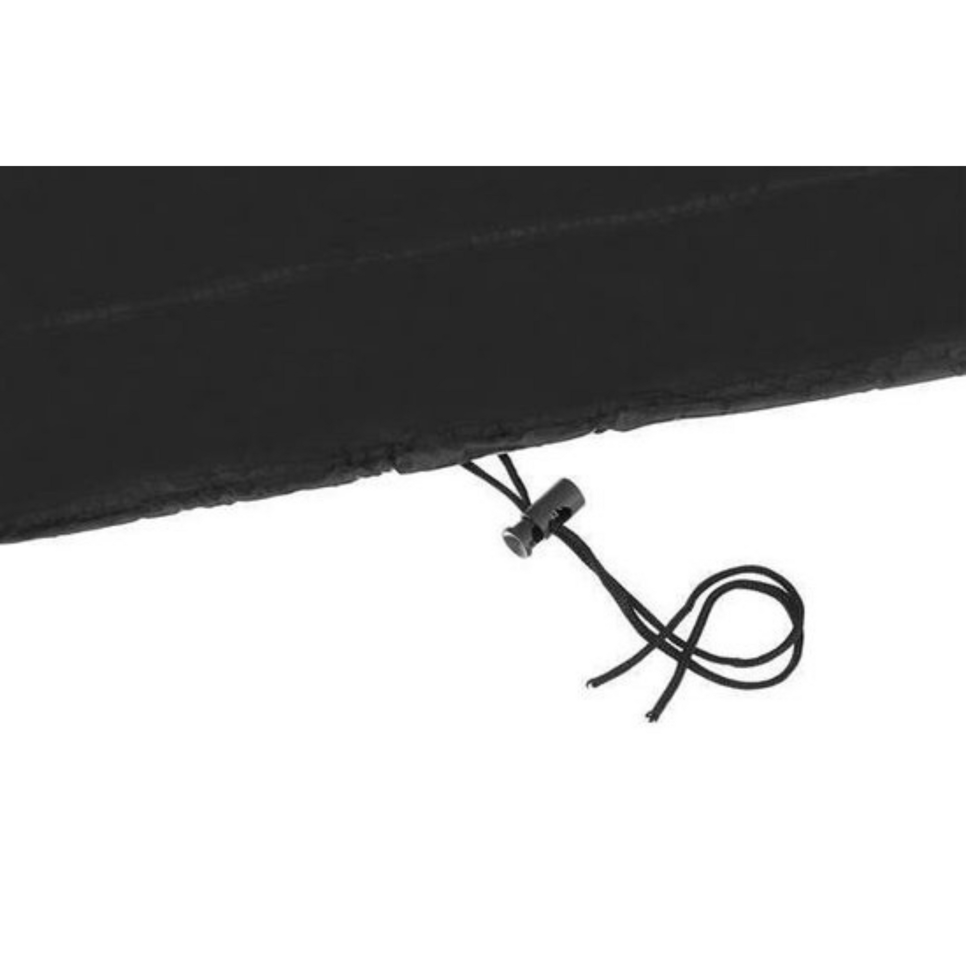 Aan de onderkant is een trekkoord met stopper aangebracht, wat de hoes strak om de stoel trekt en beschermt tegen windvlagen.