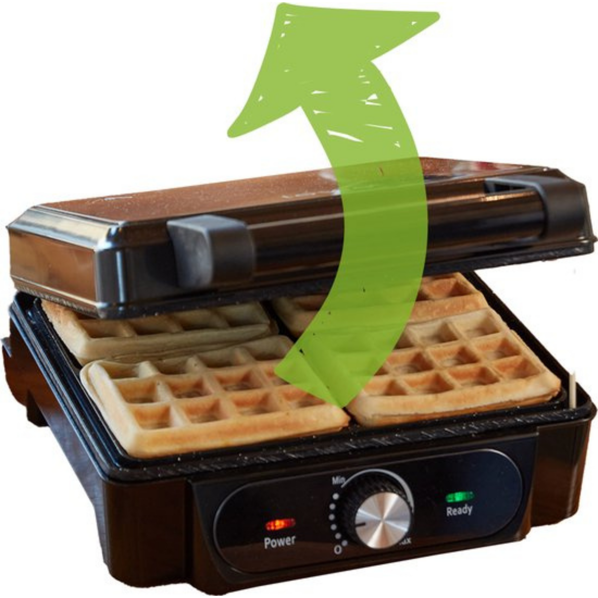 1. Hoe snel kan ik met dit wafelijzer vier luchtige wafels bereiden?