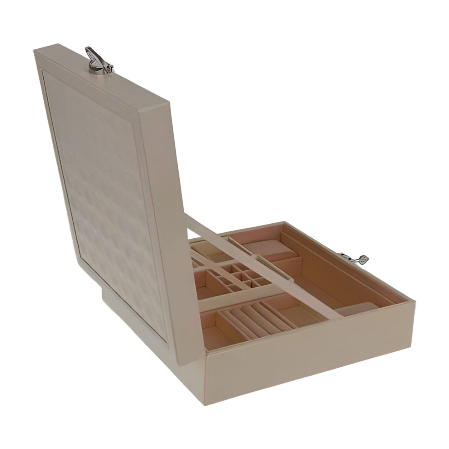 Met de koffer kun je sieraden in perfecte stijl verzorgen, beschermen tegen beschadiging en ook mooi weergeven. Gebruik een speciaal hiervoor ontworpen product en geniet op één plek van perfect geordende en beveiligde kostbaarheden