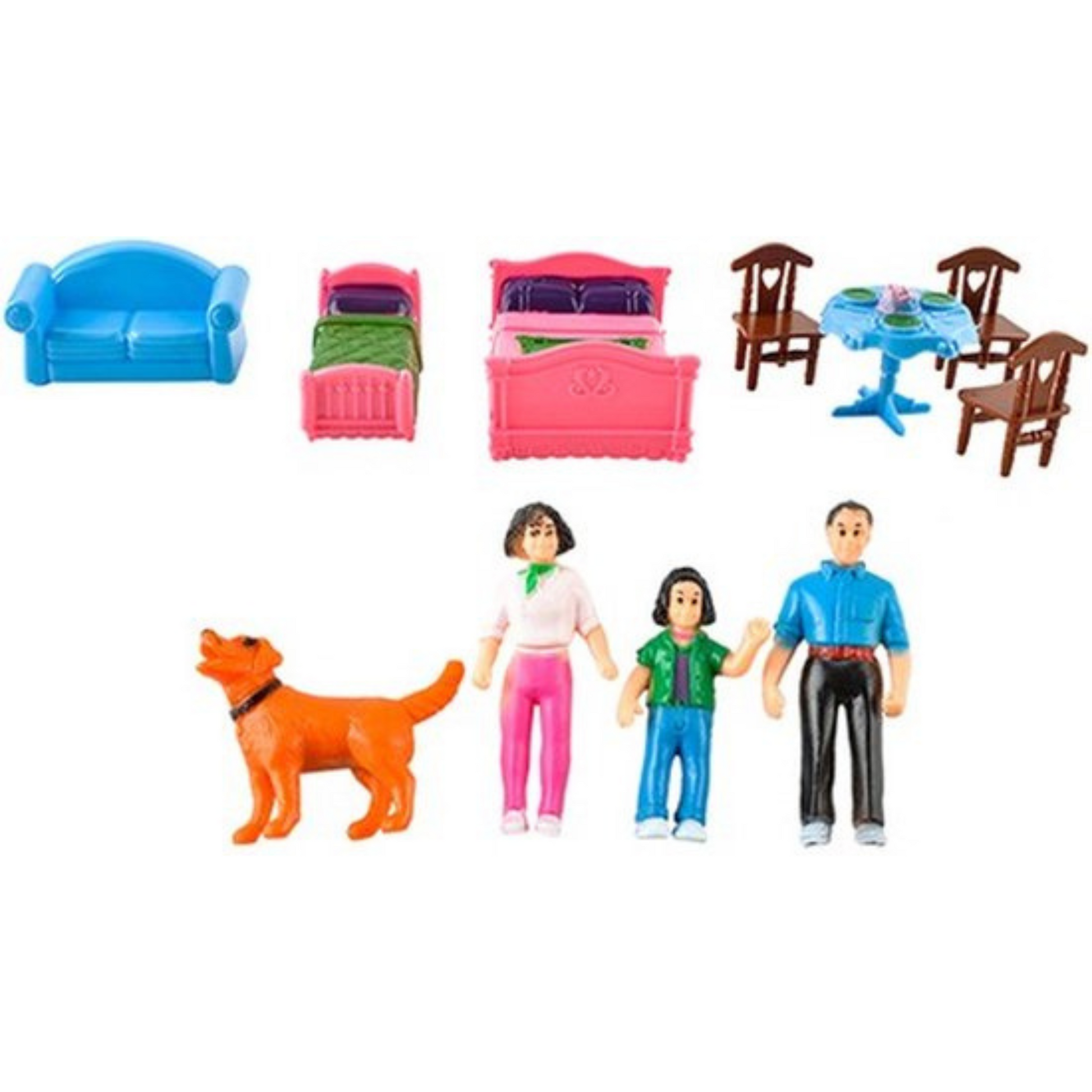 De set bevat drie extra "beweegbare" (verwijderbare) figuren van familieleden (moeder, vader en een kind), een hond en ook meubelstukken zoals stoelen, een tafel, bedden en een bank. De koelkast die open kan en alle decoratieve elementen verdienen extra aandacht - het huis heeft een brievenbus, een tuintje met een hek en decoratieve luiken, al deze dingen voegen esthetische waarden toe en bieden meer mogelijkheden voor interessant spel.